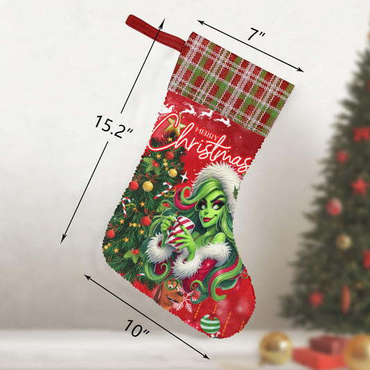 Christmas stocking Grinch Girl Sequin Christmas Stocking